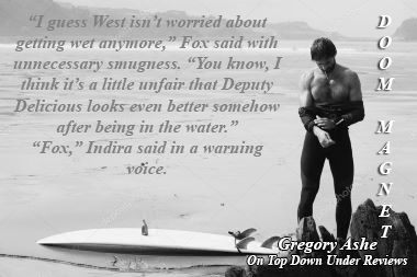 Doom Magnet starts with Hastings Rock having a surfing competition run by a local community member, Jen, and bankrolled by a property developer, Gerry. It’s a great place and time for a murder/mystery to start rolling because it’s coming into Halloween. Gerry gets into blows with a local car dealer/council member, Nate. Oh, and there’s an activist who’s graffitiing everything development in sight, making a general nuisance.